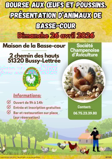 Les animaux de basse-cour seront présents sur place afin d'être jugés. Certains animaux seront en ventes.