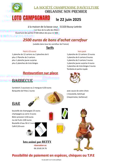 Nous vous accueillons chez nous pour notre loto Campagnard.